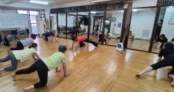 五反田の「からだの学校・湧気塾」で毎月第3水曜日の13時半〜15時。森なおみ講師(民放クラブ会員)の丁寧な指導で和気藹々、楽しく稽古をしています。会員1,500円。運動のできる服装(素足)でご参加ください。
